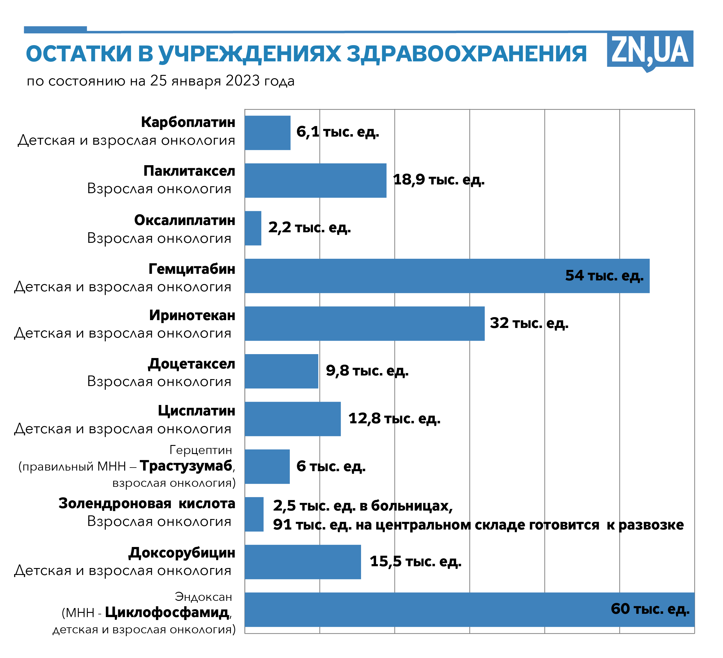 По просьбе ZN.UA, ГП «Медзакупки» предоставило информацию относительно графика ближайших поставок этих препаратов (в скобках — цифры годовых закупок), их остатков в медучреждениях по состоянию на 25 января, а также комментарий исполняющего обязанности гендиректора МЗУ Эдема Адаманова.