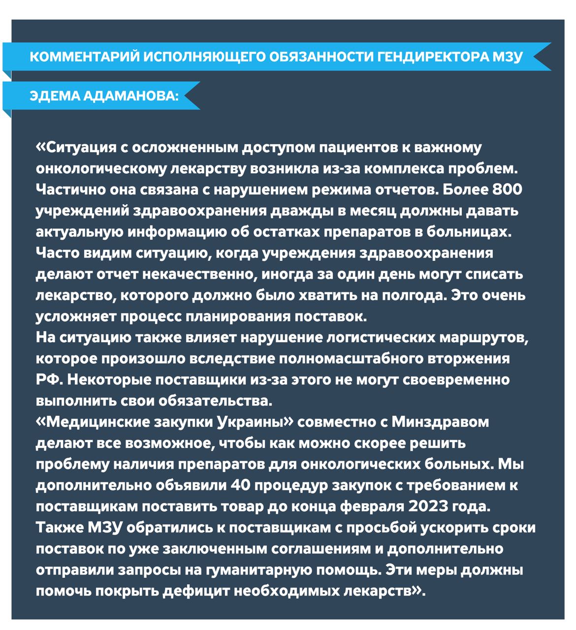 Похожие запросы поступают к нам и из Харькова, и из Сум… Даже в киевском онкодиспансере, который обычно был неплохо обеспечен (потому что кроме того, что выделял Минздрав с «Медзакупками», у него было еще дофинансирование из местного бюджета), сейчас нет банальных препаратов.