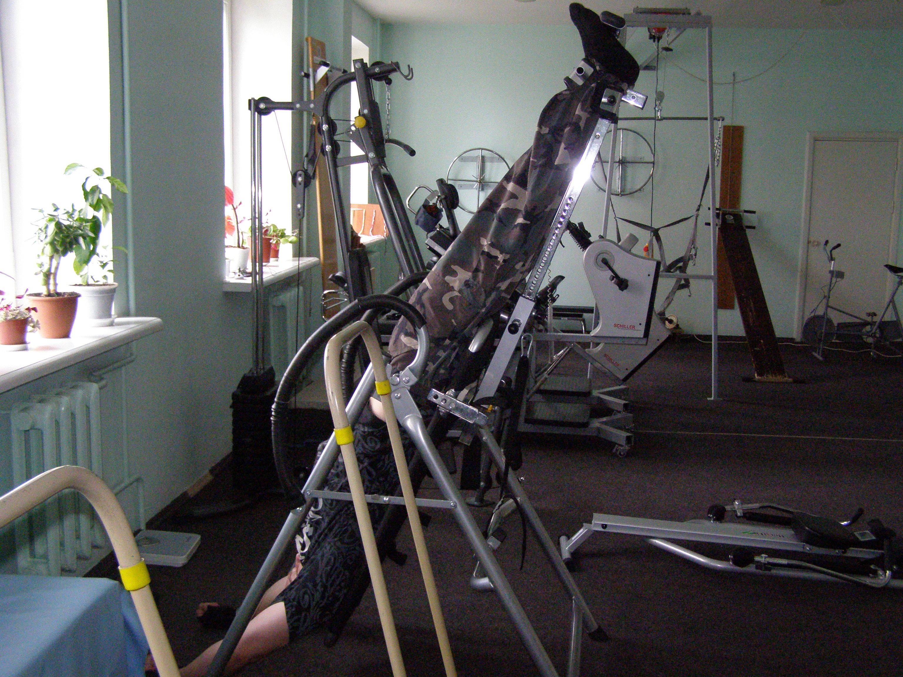 Конструкция страхует - человек не упадет, а для фиксации приспособили подвесную парашютную систему. Больной, прикованный к постели, получает возможность двигаться! Мы его поднимаем, фиксируем, а потом подгоняем, например, беговую дорожку. Без вертикализатора это невозможно сделать.