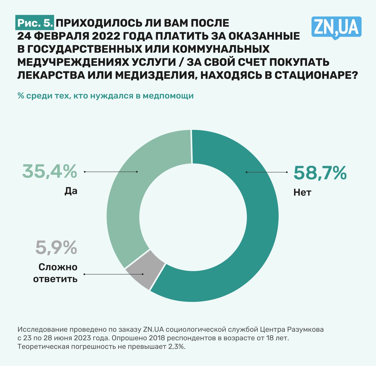 «Приходилось ли вам после 24 февраля 2022 года платить за оказанные в государственных или коммунальных медицинских учреждениях услуги (за свой счет покупать лекарства или медицинские изделия, находясь в стационаре?»). 58,7% украинцев среди тех, кто нуждался в медпомощи, это отрицали. И в самом деле, есть случаи, когда люди пытались «отблагодарить», и разные врачи от этого отказывались.