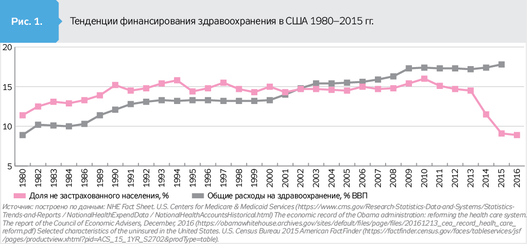 США сегодня находятся на старте новой волны концептуальных экономических и социальных реформ, в частности в сфере здравоохранения. Как известно, одним из первых шагов Д.Трампа на должности президента США стал приказ, который предполагает изменить механизмы финансирования системы здравоохранения в стране с целью ограничить нагрузку на ее бюджет, повысить уровень финансовой доступности медпомощи для населения. Эти действия направлены на отмену части положений реформы здравоохранения Барака Обамы, введенной в 2010 г., неофициальное название которой - Obamacare.