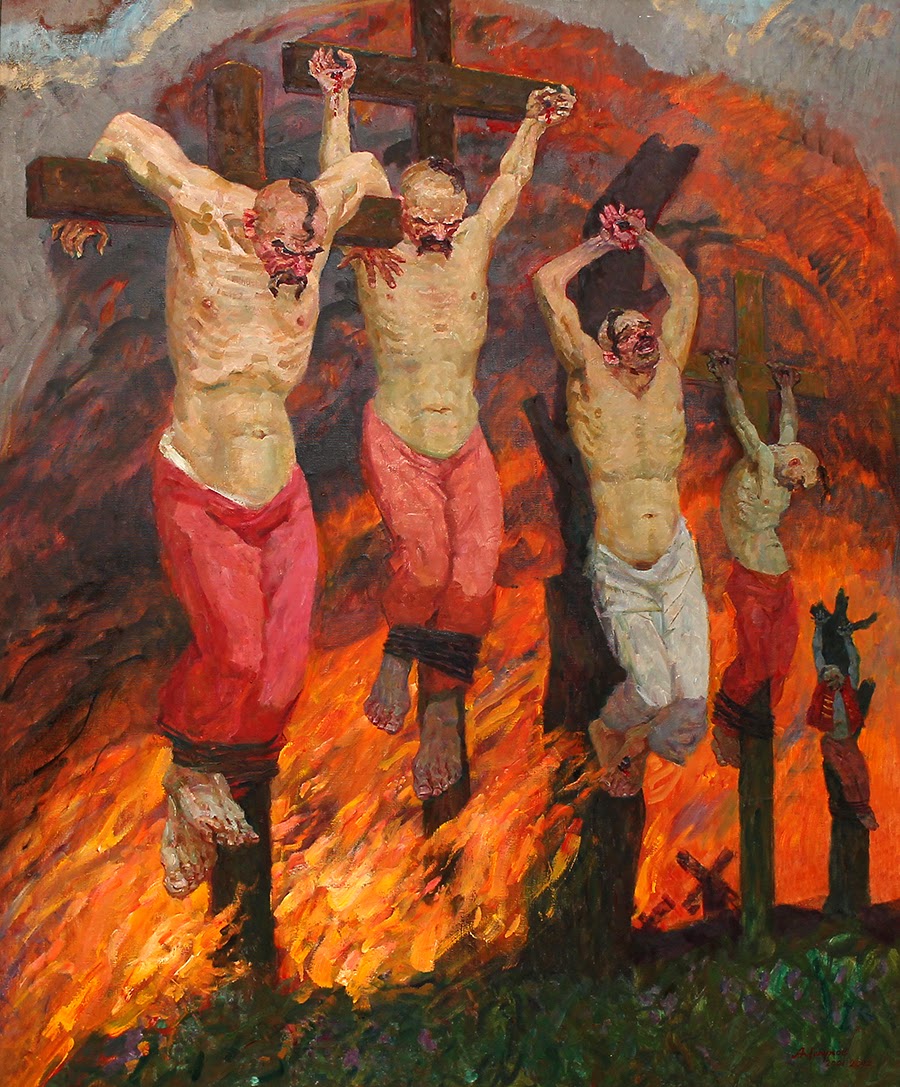 2 ноября 1708 года Александр Меншиков с помощью предателей захватил город, и все его население, включительно с младенцами, было уничтожено. Потому что таков был приказ царя: "Батурин… другим на пример сжечь". Такому же ужасному опустошению подверглась Запорожская Сечь, после того как кошевой атаман Константин Гордиенко с товарищами встал под флаг свободы. Историк Дмитрий Яворницкий воссоздал преступный путь карательной экспедиции, которая после себя оставляла безлюдную пустыню. 16 апреля напали на городок Келеберду, сожгли его, а защитников вместе с гражданским населением перекололи штыками. Следующей была Переволочная, у переправы через Днепр: "тысячу человек перебили на месте, часть людей сожгли в домах и хлевах". "Злость россиян была такой большой, - продолжает историк, - что они уничтожили всех женщин, детей и стариков, сожгли все мельницы на реках, все здания в городке, все корабли…" Мужественно оборонялась сама столица Сечи - Каменный Затон на острове Базавлук, но, преданная полковником Игнатом Галаганом, 14 мая 1709 г. была захвачена и жестоко истреблена: сожгли все шалаши и здания, разрушили окружающие зимовники, уничтожили сечевую церковь, казацкий флот и военный арсенал. По воспоминанию одного из очевидцев, "мертвых из гробов многих не только из товариства, но и чернецов откапывали, головы им отсекали, шкуры лупили и вешали". 156 старшин и казаков показательно казнили и на виселицах плотами пустили вниз по Днепру, во устрашение всех сущих.
