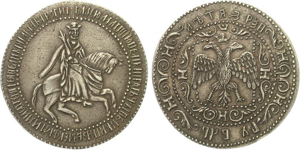 В том же году была проведена денежная реформа. Уже 8 мая 1654 г. на всей территории был введен новый серебряный рубль, который уже в следующем году изготавливали путем надчеканки на европейских талерах контрмарки (в народе "ефимки с признаком") с немалой выгодой для казны. На рубле 1654 года изображался царь, скачущий на коне, со скипетром в руках и надписью по кругу "Божией милостию великий государь, царь и великий князь всея Великия и Малыя Руси". Амбициозный московский патриарх Никон, пользовавшийся симпатией и покровительством царя, решил не отставать и самовольно включил в свое титулование почти такую же формулу с упоминанием "малой России".