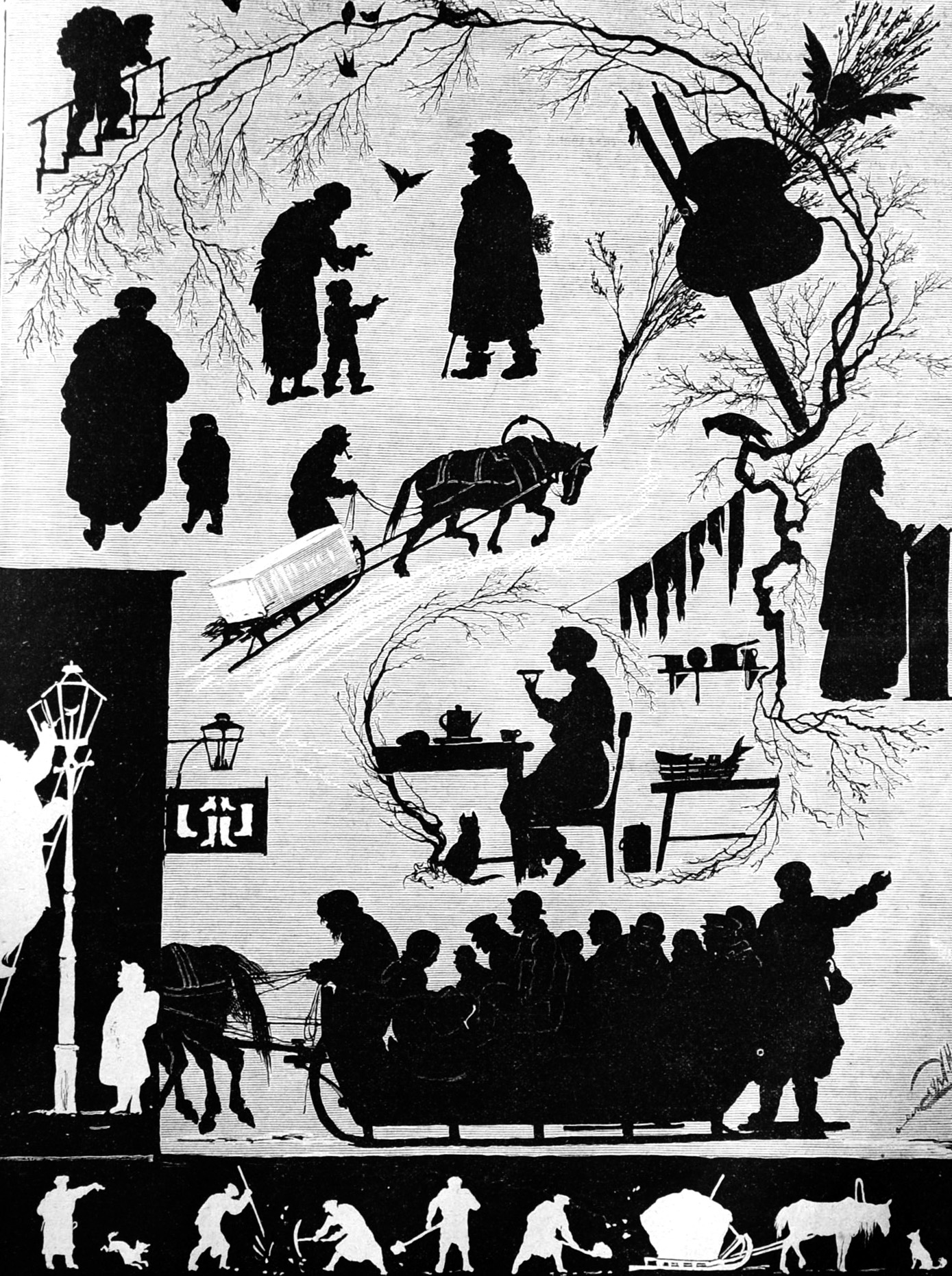 Во второй половине ХІХ - начале ХХ в. среди киевлян были очень популярными т.н. силуэты - рисунки, выполненные тушью, представляющие собой лишь контуры предметов в виде черных пятен. На силуэтах "Великий пост" художника и этнографа Николая Каразина видим жанровую сценку Чистого четверга: "Вытянутые, опухшие, точно еще не совсем проснувшиеся лица. Все входит в обычную колею будничной жизни. Раздаются звуки великопостного колокола, вправо видны церковные свечи и просфора. Начинаются обычные сцены: вон дворник тащит дрова, чиновник идет в баню с веником, повезли лед с реки, кухарка, запасшись уже великопостными припасами, пьет чай, а Васька смотрит, не перепадет ли ему рыбки. В общественные чайные потянулся занятой люд. Свозят с улиц кучи мерзлой грязи и снегу. А в церквах раздается строгая ектенья и высокая молитва о "смиренномудрии, терпении и любви", призывает всех к покаянию, напоминает, что всему есть конец и границы".