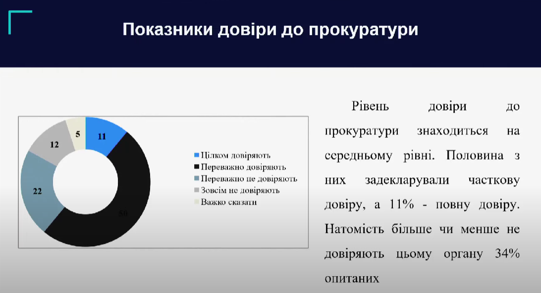 По словам юриста и исполнительного директора ОО "Адвокат будущего" Дарьи Писаренко, вопрос касался именно восприятия прокуратуры в громаде, где живут респонденты.