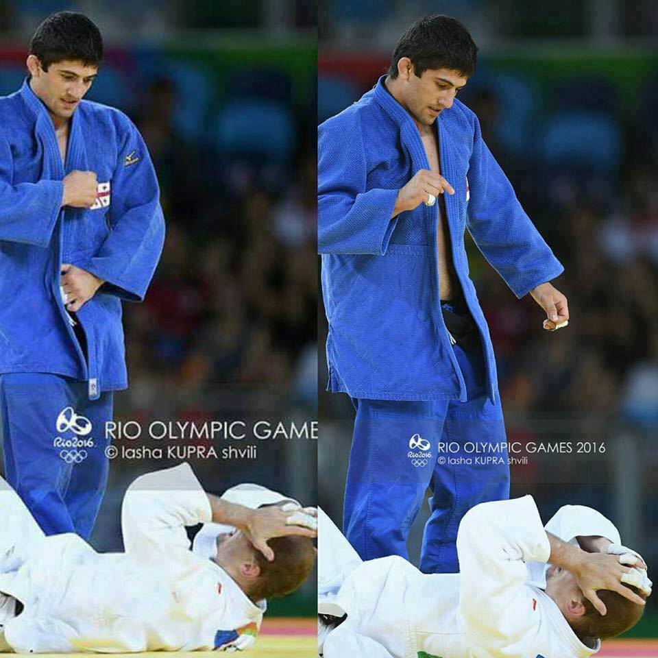 Грузинский дзюдоист Лаша Шавдатуашвили в четвертьфинале Олимпиады-2016 отпраздновал победу над россиянином Денисом Ярцевым символическим жестом.