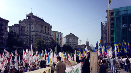 Напротив входа в здание Киевсовета собрались несколько сотен активистов ВО "Батьківщина", "УДАР", "Свобода", а также ряда киевских общественных организаций. Поначалу они расположились на пешеходной части ул. Крещатик, а также на ступеньках и крыльце, ведущих к зданию.