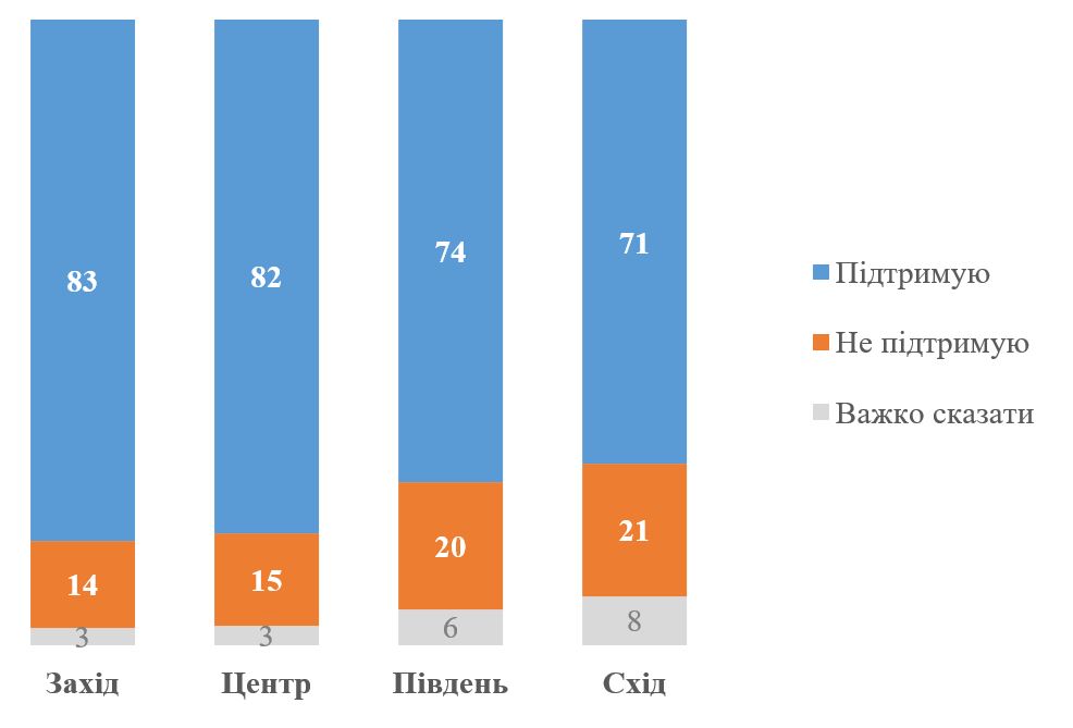 Опрос показал, что на западе и в центре Украины более высокий уровень поддержки документа. Несмотря на это, во всех регионах его одобряют большинство граждан.