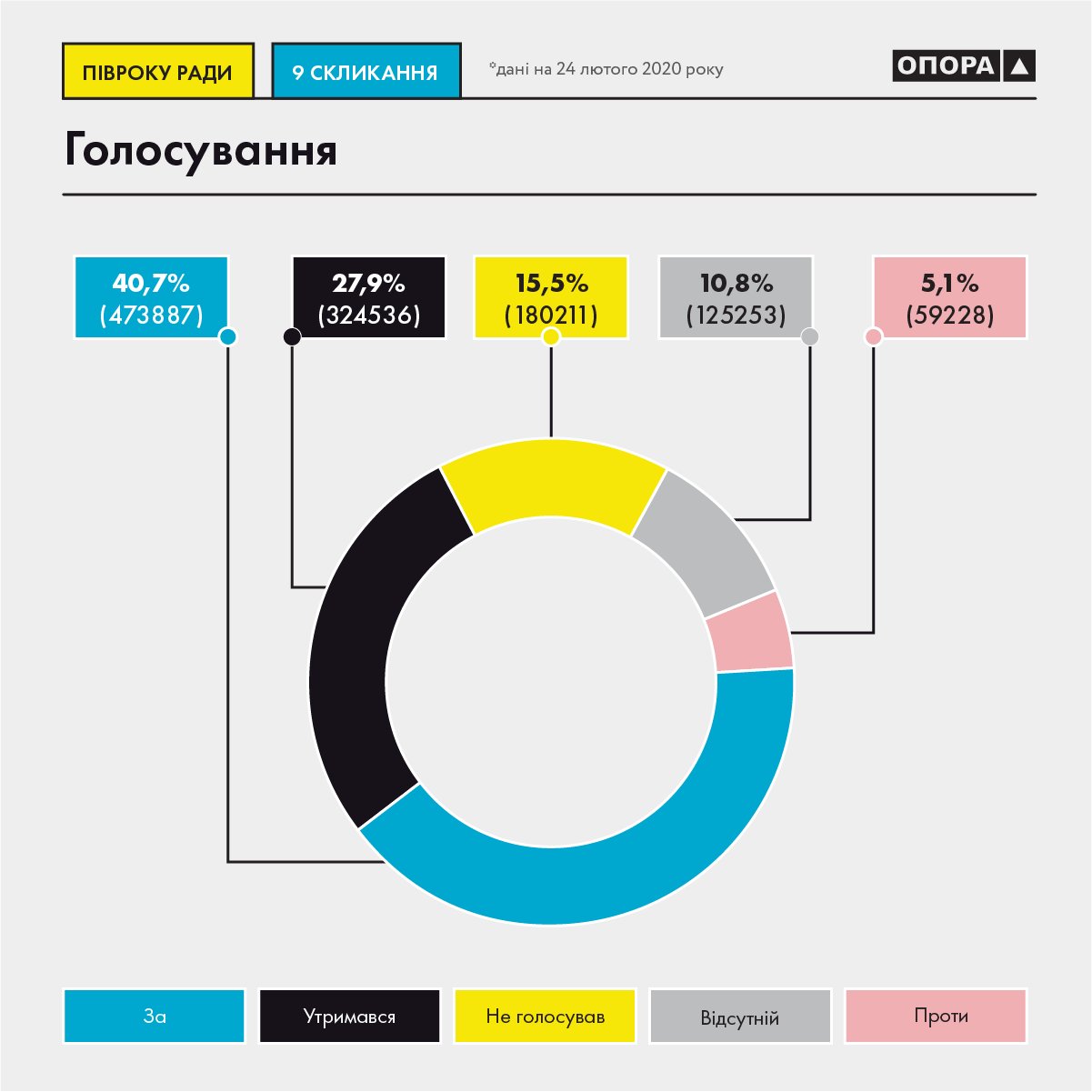 При этом в 15,5% случаев народные депутаты не голосовали вообще, у 10,8% парламентарии отсутствовали.