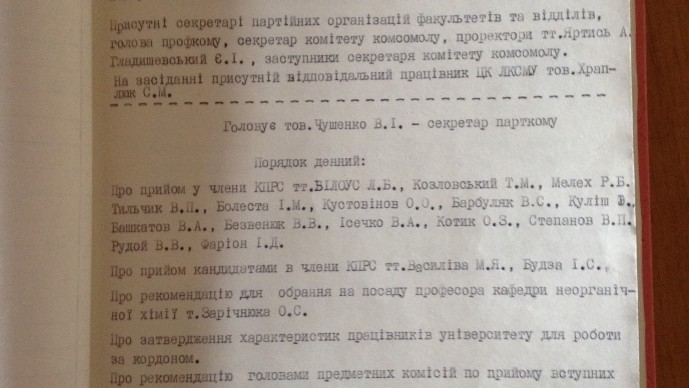 Дело № 248, опись №2, фонд № 92 содержит, в частности, протокол заседания парткома ЛГУ им. И. Франко от 3 апреля 1987 года. В повестке дня этого заседания стоит вопрос о приеме Ирины Фарион кандидатом в члены КПСС. Положительное решение приняли единогласно.