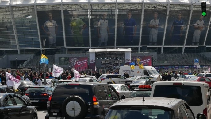 Незадолго до начала дебатов у стадиона начали собираться сторонники Петра Порошенко. В 13:00 на площади у входа на стадион было анонсировано проведение акции в поддержку действующего президента, сообщает "Украинская правда".