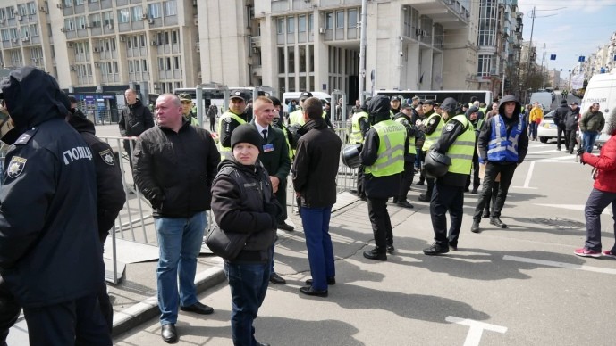 В связи с проведением мероприятия на стадионе усилены меры безопасности, в центре Киева работают несколько тысяч полицейских. Места для выступления и Порошенко, и Зеленского обустроены в пресс-центре "Олимпийского", вход на стадион открыт для всех желающих, их пропускают через металлодетекторы (16 устройств).