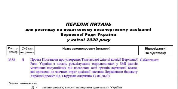 Депутаты планируют рассмотреть законопроект о создании временной следственной комиссии (ВСК) для расследования заявлений экс-министра финансов Игоря Уманского относительно "махинаций с НДС".