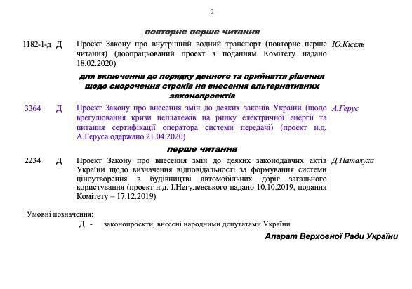 В первом чтении планируется рассмотреть законопроекты об изменении суммы залога для кандидатов на местных выборах (должны состояться осенью 2020 года – ред.) и пересмотре оснований для увольнения директора Национального антикоррупционного бюро Артема Сытника.