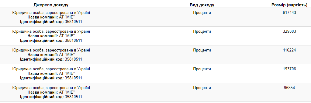 Согласно декларациям президента, за десять месяцев 2018 года процентный доход Порошенко от вкладов в Международном инвестиционном банке, бенефициаром которого он является, составил 12,4 млн гривень.