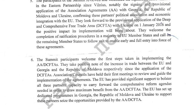 Киев и Тбилиси рассчитывали на то, что во время Саммита прозвучат конкретные даты реализации безвизового режима. Но в проекте декларации указано, что прогресс зависит от проведенных реформ.