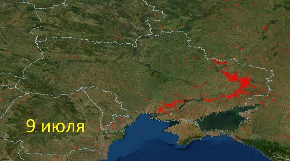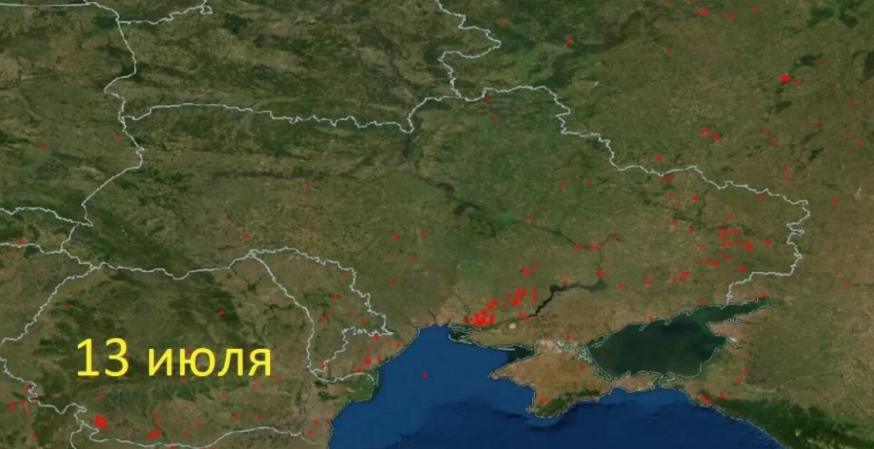 Спустя несколько дней, а именно 13 июля, ситуация в корне изменилась. Спутники, мониторящие пожары, зафиксировали в разы меньшее их количество на линии фронта.