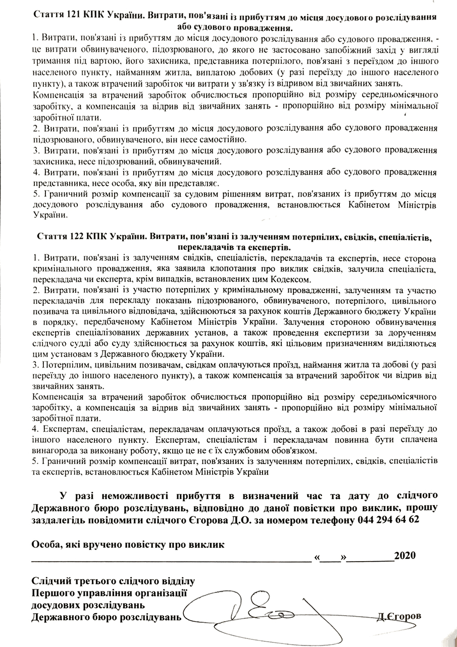 Госбюро расследований опубликовало сегодня на своем сайте повестки о вызове пятого президента, народного депутата Петра Порошенко на допросы 21 января и 24 января.