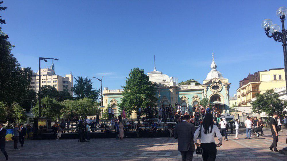 9:59 Через несколько минут Владимир Зеленский должен войти в Раду. Сейчас он у Мариинского дворца, люди встречают его овациями.