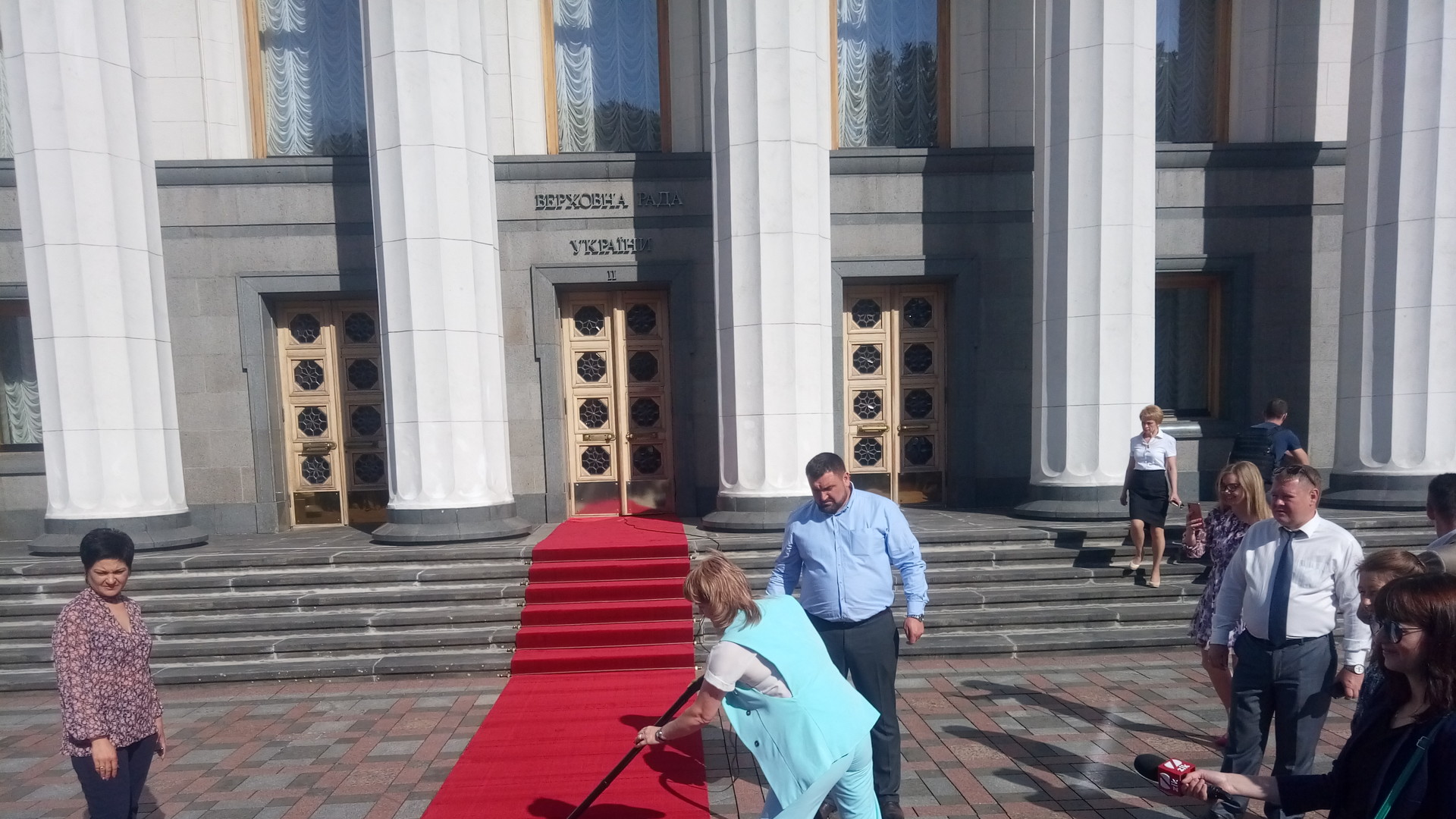 9:00 Под Радой постелили красную дорожку, по которой новоизбранный президент пройдет перед принесением присяги. В это же время к зданию парламента прибыли коллеги Зеленского по "95 Кварталу". В комментарии журналистам они сообщили о том, что думать о походе в политику "пока рано".