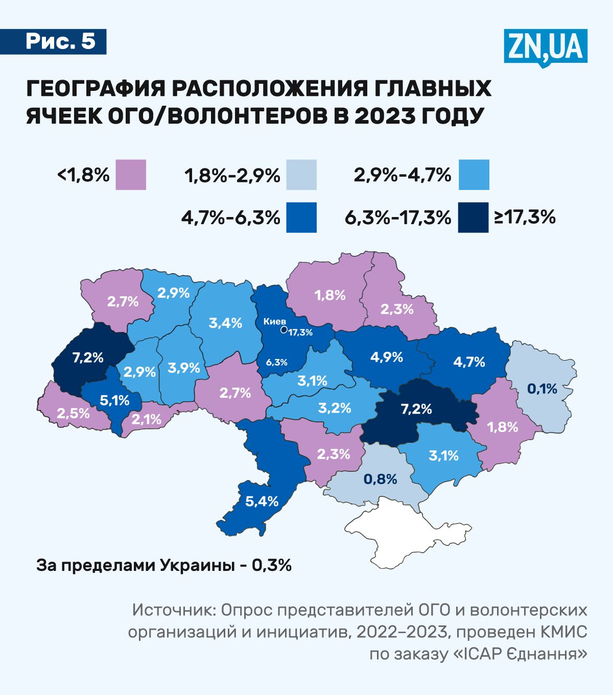 В конце марта украинская общественная организация «ІСАР Єднання» представила новое комплексное социологическое исследование «Гражданское общество Украины в условиях войны» за 2023 год (проведено Киевским международным институтом социологии (КМИС).
