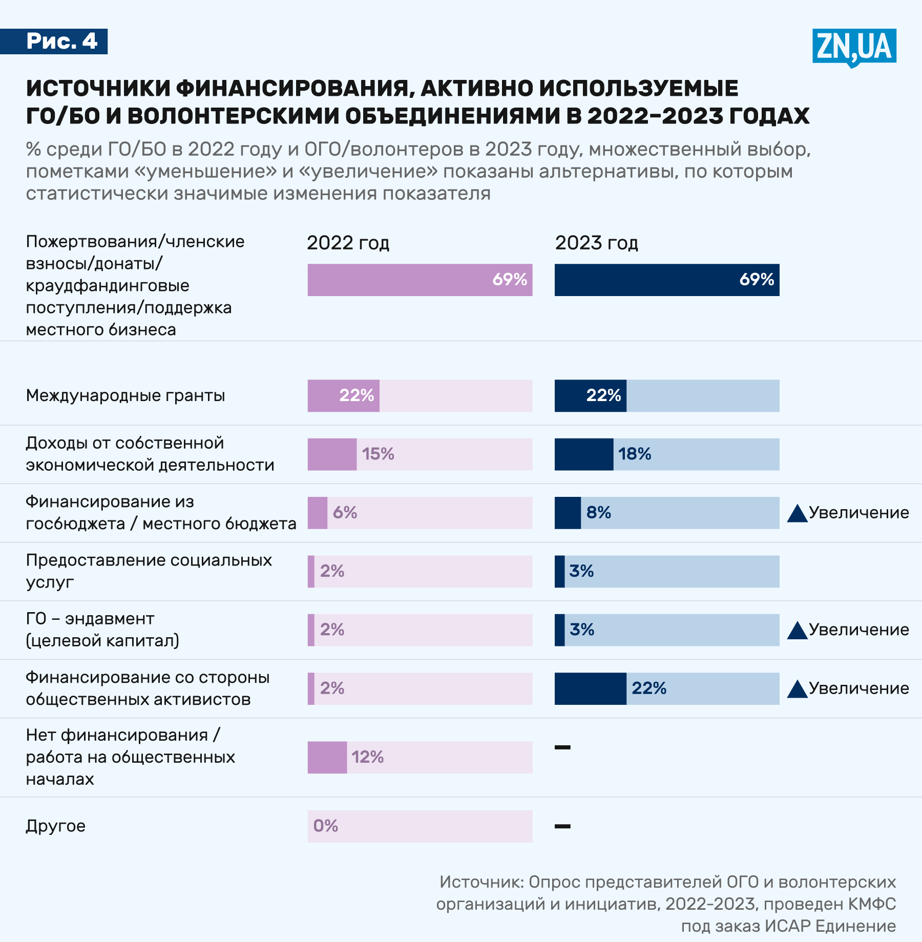 Поддержки никогда не было и не будет достаточно. Мы видим в исследовании, что 22% — это международные гранты, 69% — частные средства, донат, краудфандинг, членские взносы, благотворительные акции.