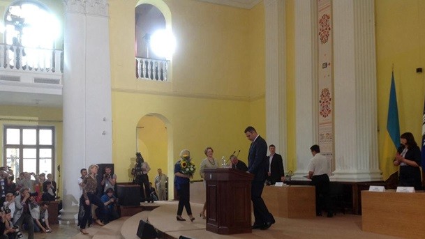 Свое выступление он начал с призыва помнить события Евромайдана и минуты молчания по погибшим.