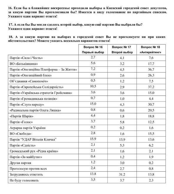 Что касается второй ключевой задачи, которую будут решать политические силы на выборах, то здесь у Виталия Кличко есть проблемы. Его "УДАР" и "Слуга народа" идут практически вровень, набрав 15,9 и 15,0 процентов соответственно. Партия экс президента Петра Порошенко Европейская солидарность, которому Кличко, как известно уже публично отказал в сотрудничестве на выборах в Киеве, имеет 10,5 процентов поддержки киевлян.