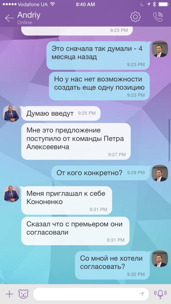 У Абромавичуса сохранились эти сообщения – которые после начала скандала Пасишник удалил из общего диалога, не зная, что министр экономики предусмотрительно успел сделать копии.