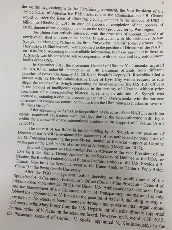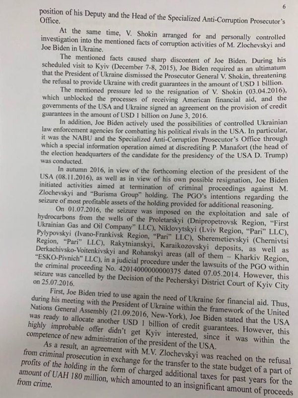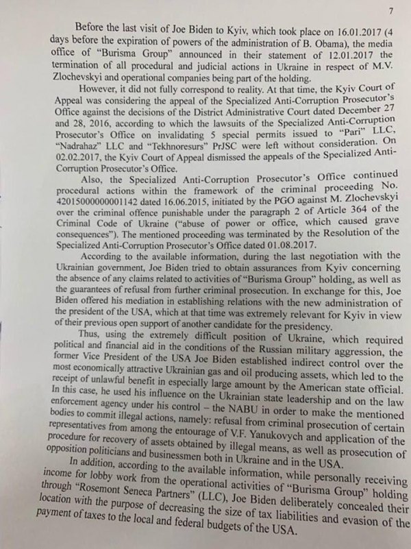 По версии Луценко, Злочевский регулярно платил им эти взятки, а Байден взамен постоянно третировал президента Украины Петра Порошенко отставками генпрокурора. Каждый, кого предлагал Порошенко, якобы хотели посадить Злочевского, но Байден мешал, отмечает Лещенко.