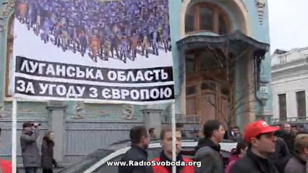 Активисты "Свободы" пришли с плакатами "Геть московских оккупантов! Геть московских холуев!".