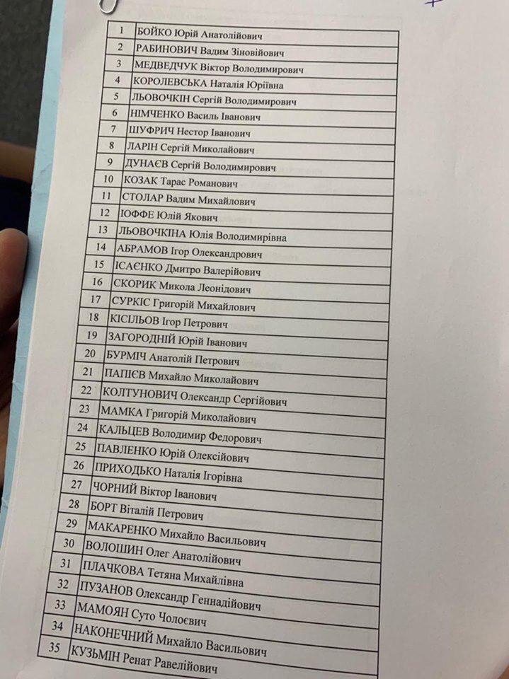 Так, список возглавляют сопредседатели "Оппозиционной платформы" - Юрий Бойко и Вадим Рабинович. В первой десятке также: Виктор Медведчук, Наталья Королевская, Сергей Лёвочкин, Василий Нимченко, Нестор Шуфрич, Сергей Ларин, Сергей Дунаев, Тарас Козак.