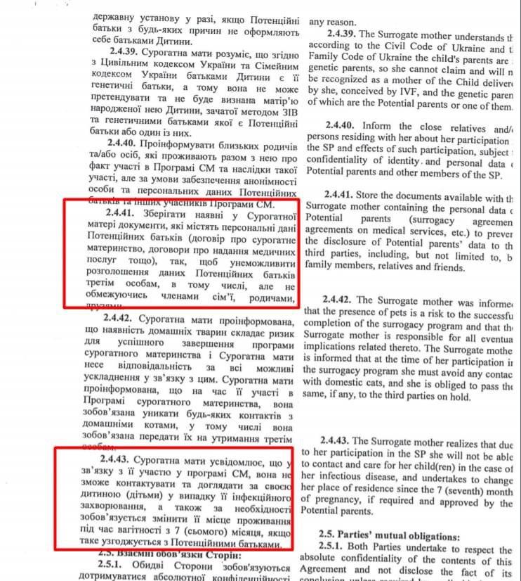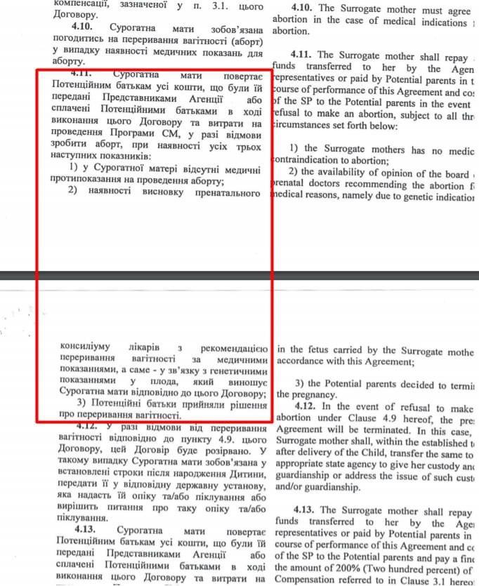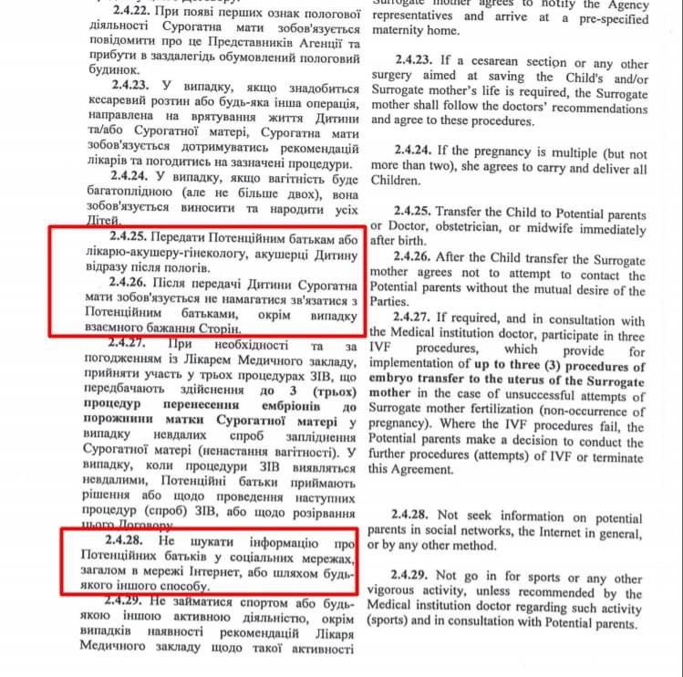 "Такой формат "передачи" ребенка превращает ребенка в объект договора, в товар, за который платят. А если "товар" не подходит – договор предусматривает возможность его лишиться. В частности, "отклонение от нормы" трактуется им как "наличие врожденных и/или наследственных заболеваний, других патологий, пороков развития Ребенка или любые недостатки у здорового Ребенка, как, например, недостатки веса, роста и тому подобное". То есть за то, что ребенок меньше весит – от нее могут избавиться?" - пишет Кулеба.
