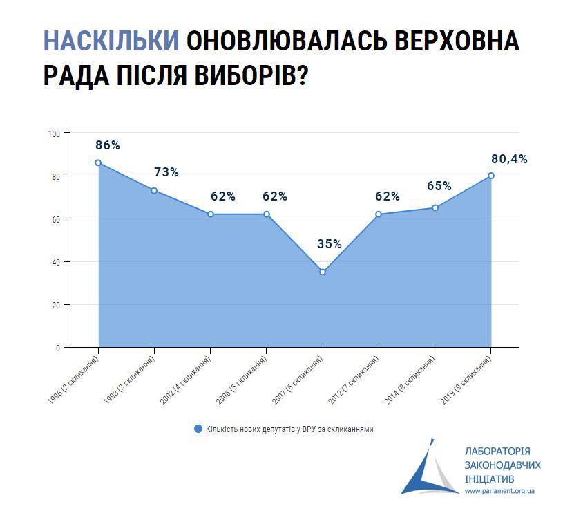 Согласно предварительным результатам голосования на сайте Центральной избирательной комиссии в Верховной Раде девятого созыва три четверти депутатов будут "новичками". В частности в парламент по состоянию на сейчас проходят 323 кандидаты, которые ранее там не были.