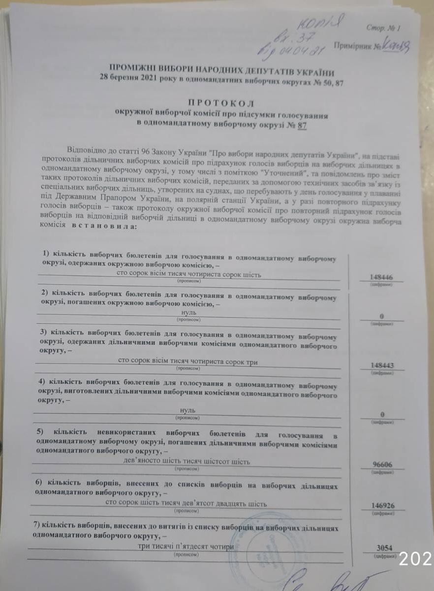 Заседание окружной избирательной комиссии №87 в Надворной Ивано-Франковской области завершилось объявлением результатом голосования и утверждением протокола. Согласно протоколу ОИК, довыборы в Верховную Раду выиграл кандидат от «Слуги народа» Василий Вирастюк. Александр Шевченко занял второе, а Руслан Кошулинский – третье место. Подсчет голосов был завершен около 7:00 утра в воскресенье, 4 апреля.