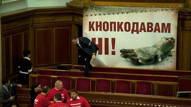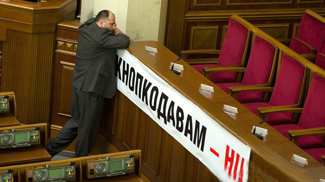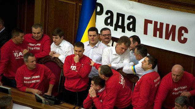 Ранее народный депутат от фракции "Батьківщина" Александр Бригинец заявлял, что оппозиция будет блокировать трибуну парламента до тех пор, пока не будет введена система персонального голосования "Рада-3".