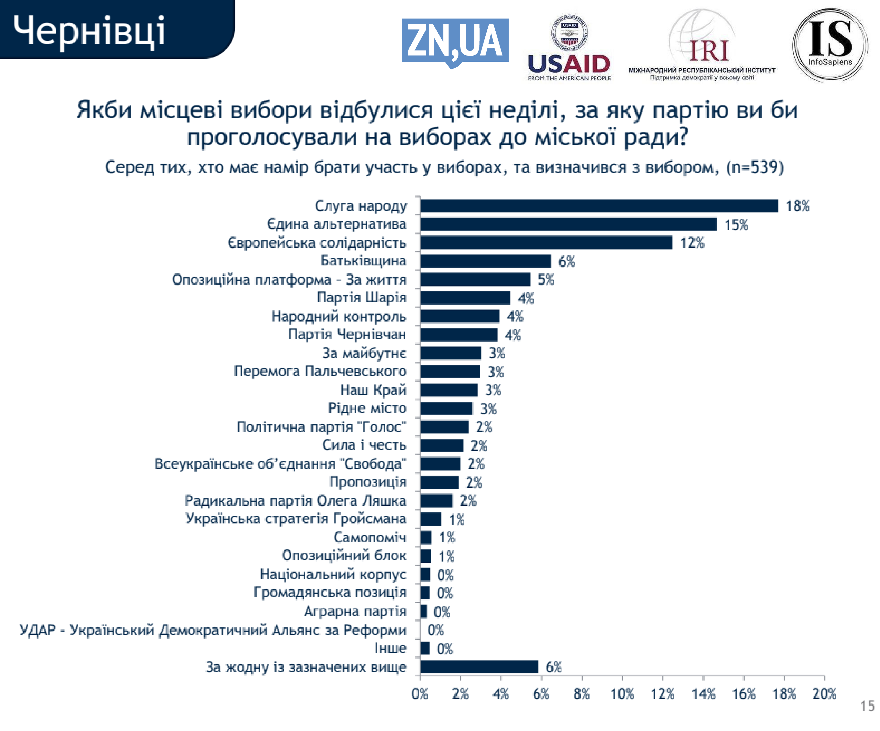15% опрошенных отметили, что им нравятся кандидаты в меры и депутаты горрады, еще 9% считают политсилу лучшей альтернативой действующей власти.
