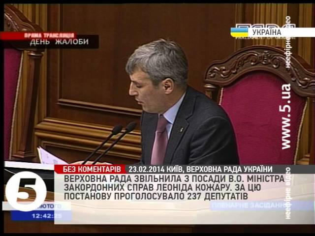 Верховная Рада освободила Леонида Кожару от исполнения обязанностей главы Министерства иностранных дел Украины, Дмитрия Табачника от исполнения обязанностей главы Министерства образования, а Раису Богатыреву от исполнения обязанностей главы Минздрава.