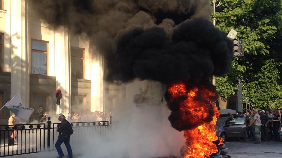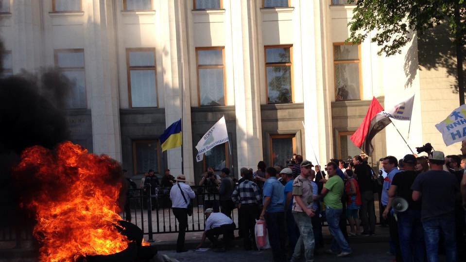 Валютные заемщики возобновили протесты под Радой, снова горят шины