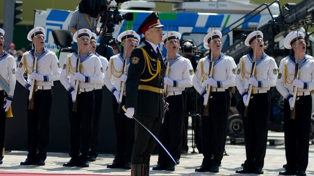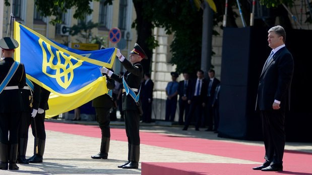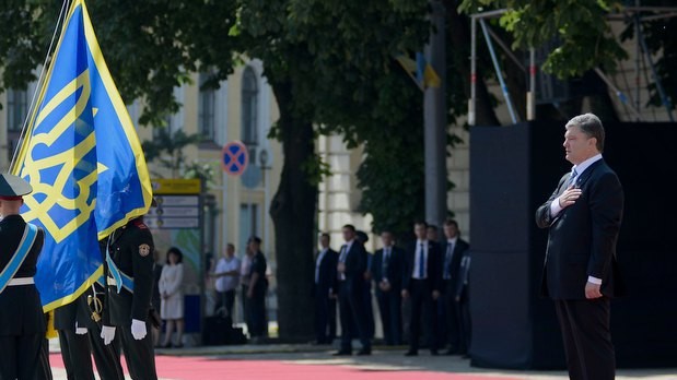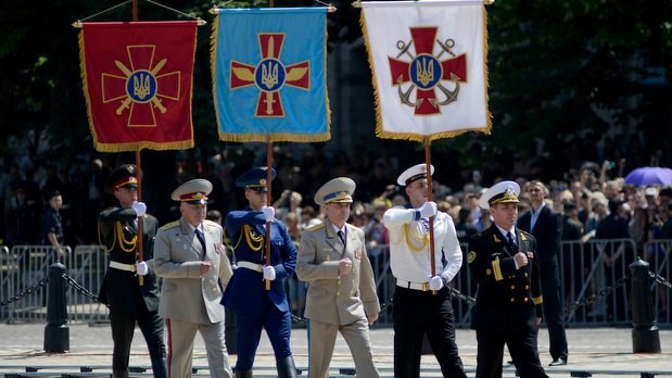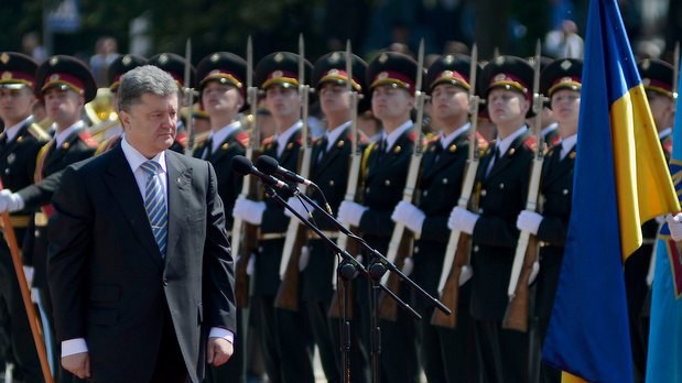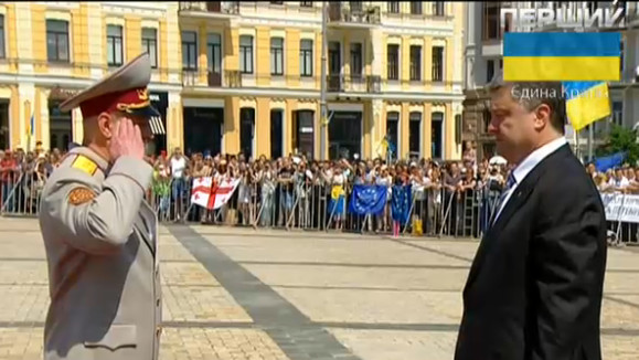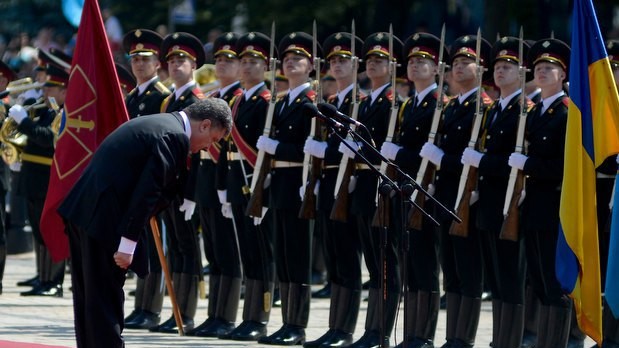 Президент Украины Петр Порошенко принял командование Вооруженными Силами Украины. На Софийской площади Киева начальник Генерального штаба - Главнокомандующий Вооруженных Сил Украины Михаил Куцин отрапортовал Верховному Главнокомандующему ВСУ Петру Порошенко, а затем представил ему командующих видов ВСУ.