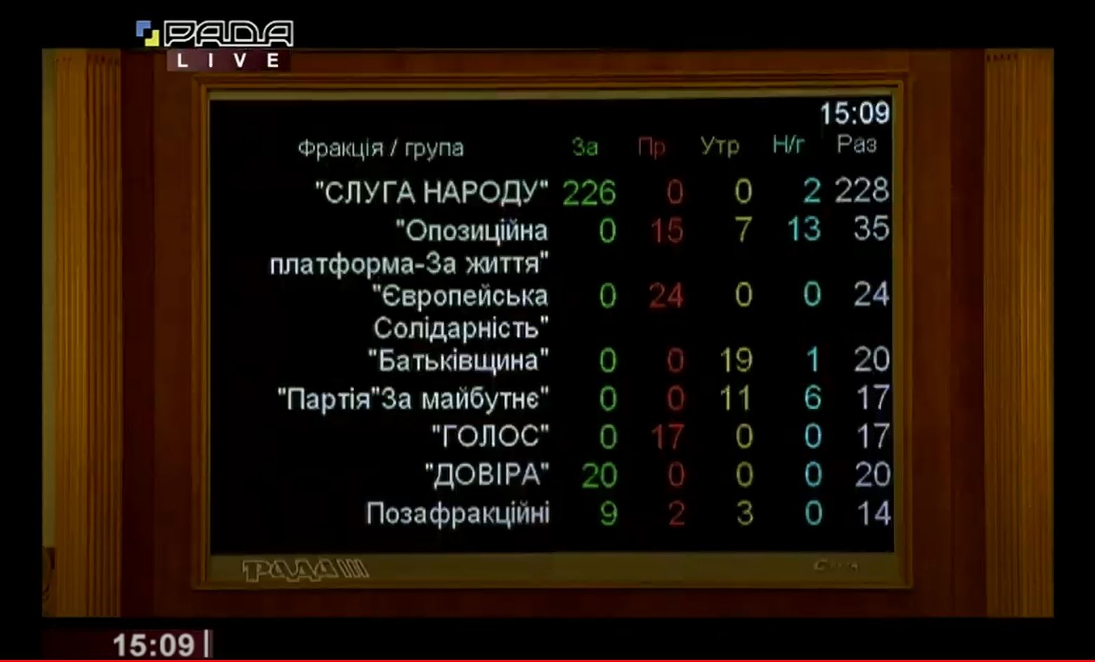 Верховная Рада приняла в целом закон №3612 "О народовластии через всеукраинский референдум". Документ поддержали 255 народных депутатов.