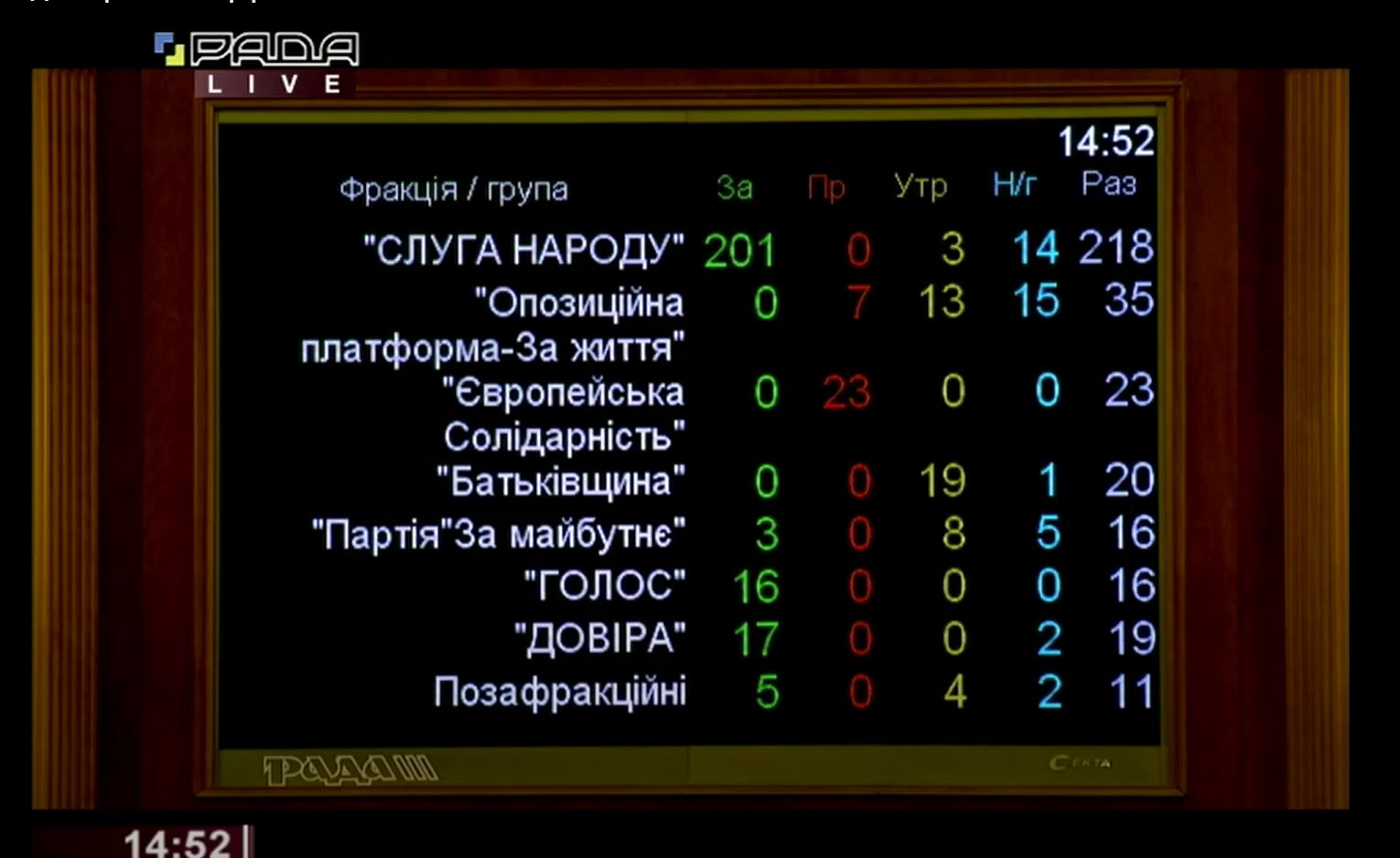 - "Слуга народа" - за - 201, против - 0;
