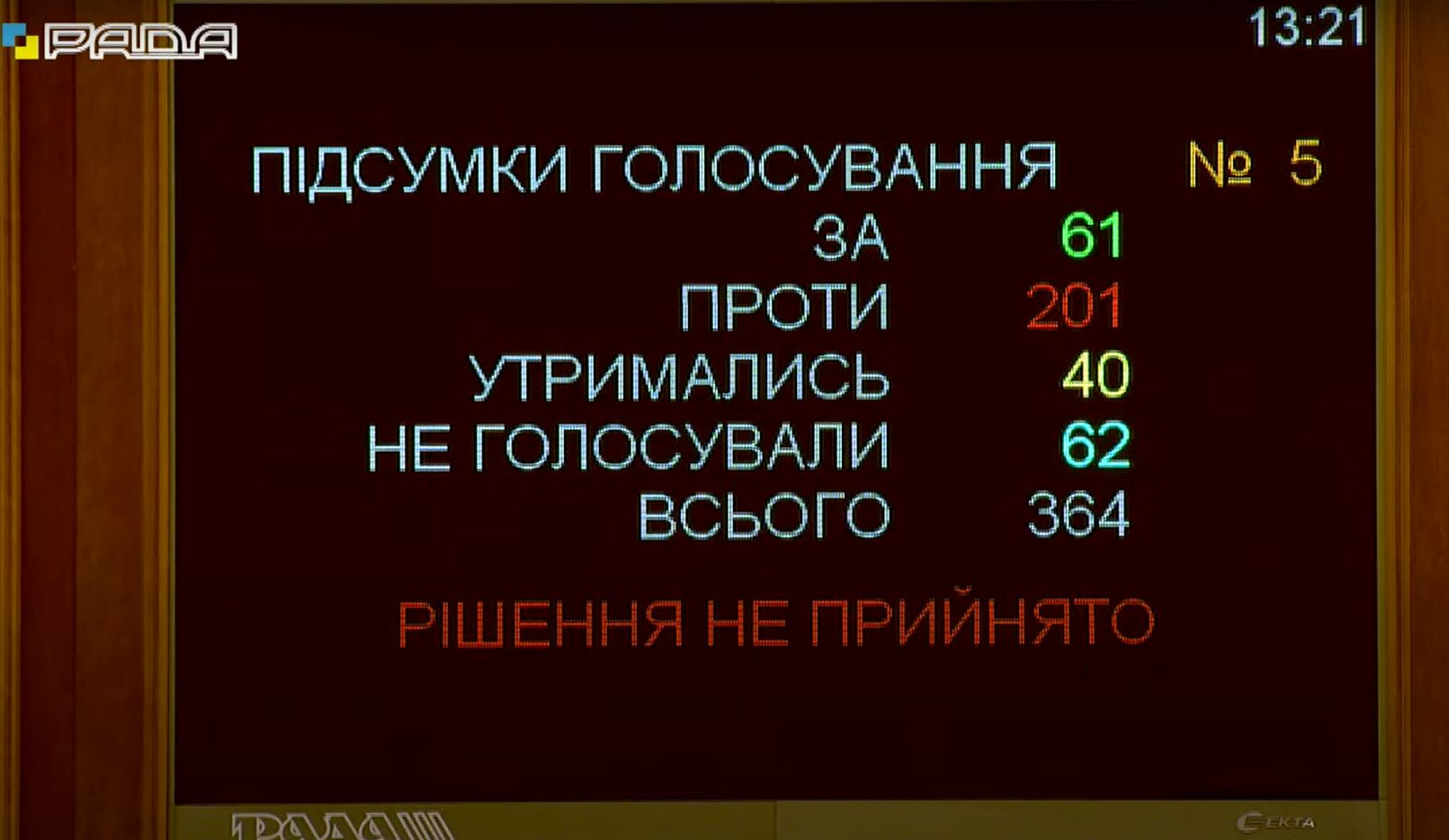 Народные депутаты не смогли отстранить председательствующего на заседании Верховной Рады 23 сентября первого вице-спикера Руслана Стефанчука. Такое решение поддержал 61 депутат.