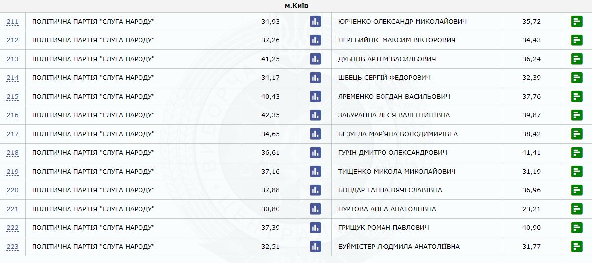 Президентская партия "Слуга народа" побеждает во всех одномандатных округах Киев. Об этом свидетельствуют данные, обнародованные Центральной избирательной комиссией.
