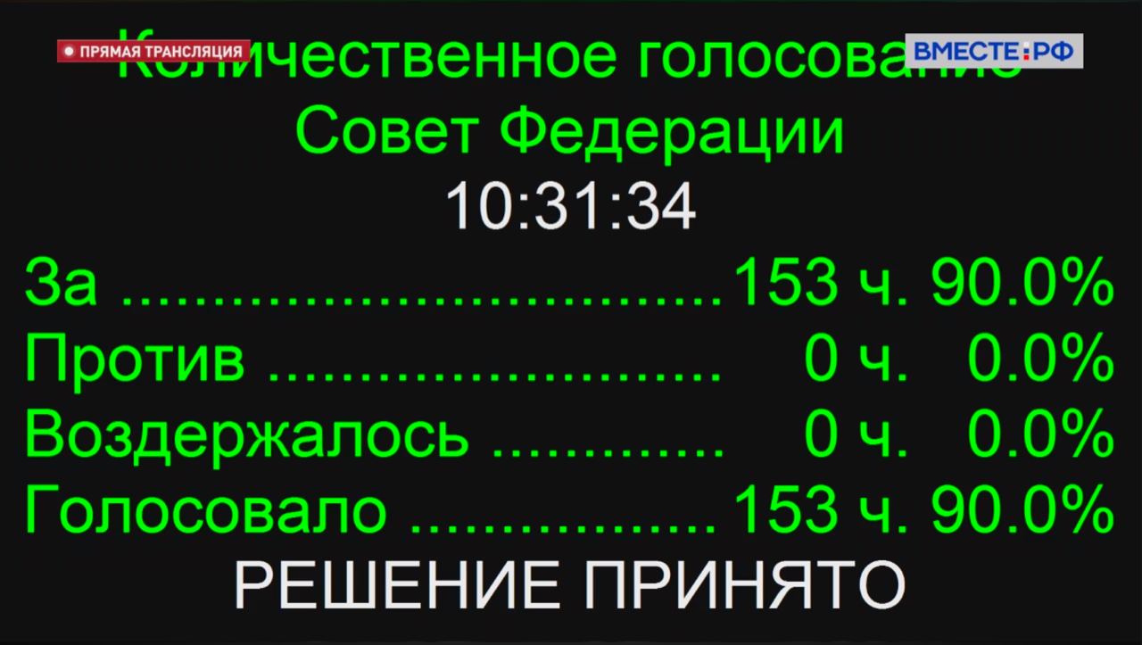 Совет федерации России проголосовал за ратификацию «договоров» об аннексии Донецкой, Луганской, Запорожской и Херсонской областей Украины. Как сообщают российские СМИ, решение было приято единогласно. Накануне "документы" единогласно одобрила Госдума.