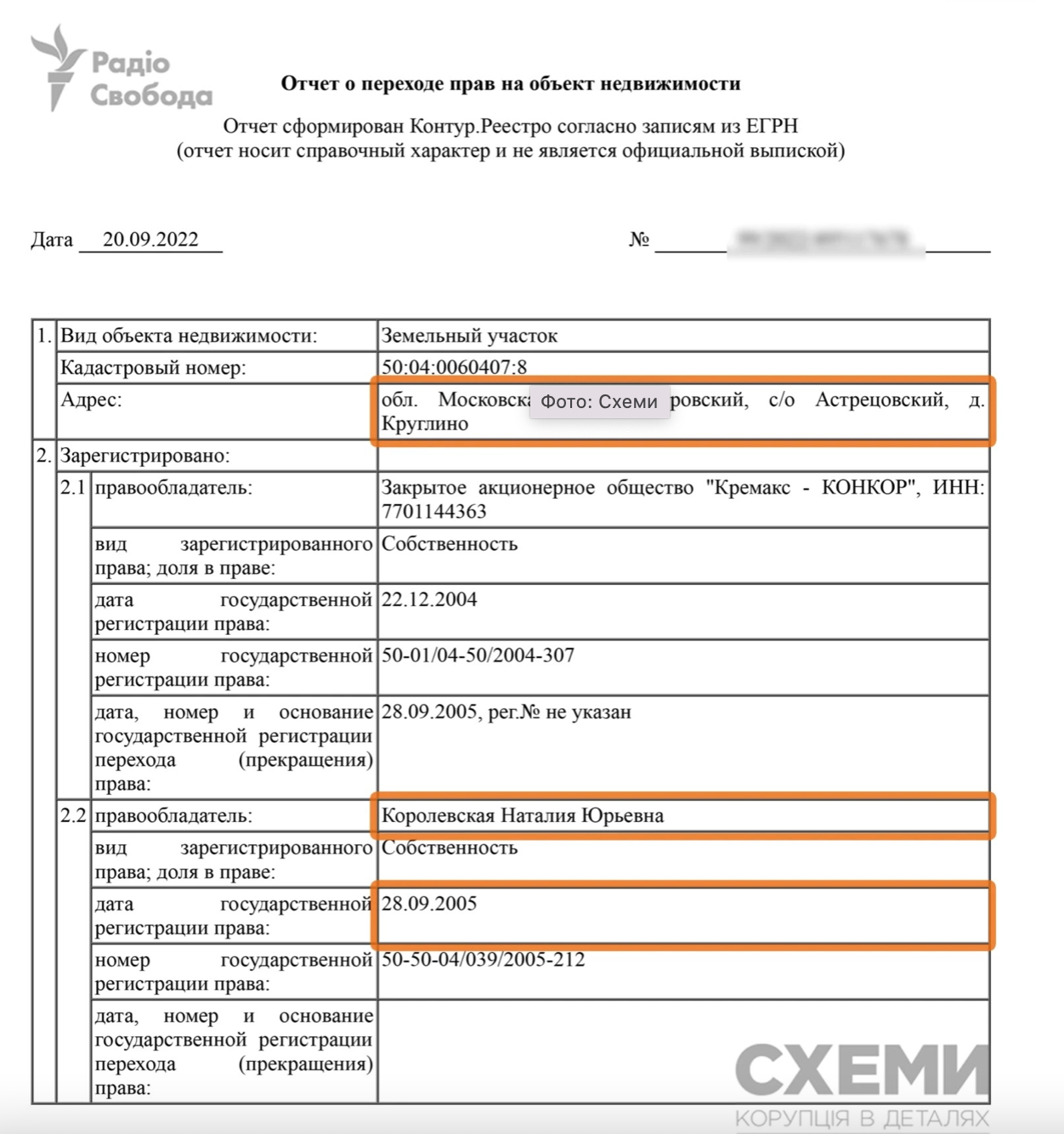 Наталья Королевская, депутат ВР от уже запрещенной партии ОПЗЖ, с 2006 года имеет дом под Москвой, однако за 16 лет она ни разу не декларировала его. Об этом говорится в расследовании "Схем", журналисты вышли на эту недвижимость, когда пытались узнать, где депутат, которая, кстати, имеет в РФ близких родственников, делась после начала полномасштабной войны.