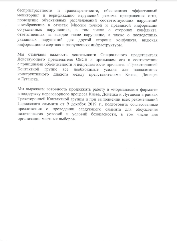 «В тексте проекта присутствуют также несколько положений, выходящих далеко за рамки компетенции нормандского формата и не имеющих существенного значения в вопросе имплементации Минских соглашений», - добавляется в ответе.