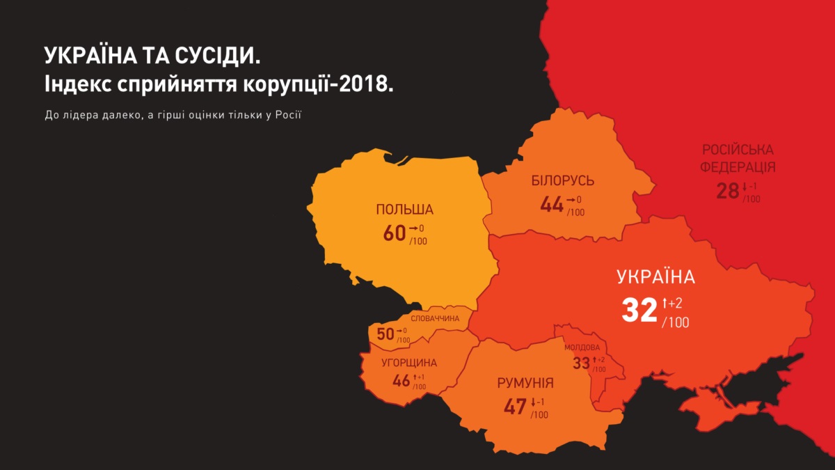 "Украина немного улучшила свои показатели. Ее результат – 32 балла и 120 место среди 180 стран. Таким образом Украина получила еще 2 балла и поднялась на 10 мест (результат за 2017 год – 30 баллов, 130 место)", - говорится в сообщении.
