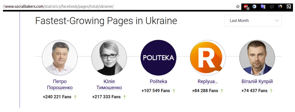 Как отмечают активисты, страница Петра Порошенко в социальной сети Facebook - одна из самых популярных среди украинских политиков, на нее подписано более 1,4 млн пользователей и количество подписчиков постоянно растет. К примеру с 2-го июля по 11 августа количество предпочтений страницы выросло почти на 300 тысяч.