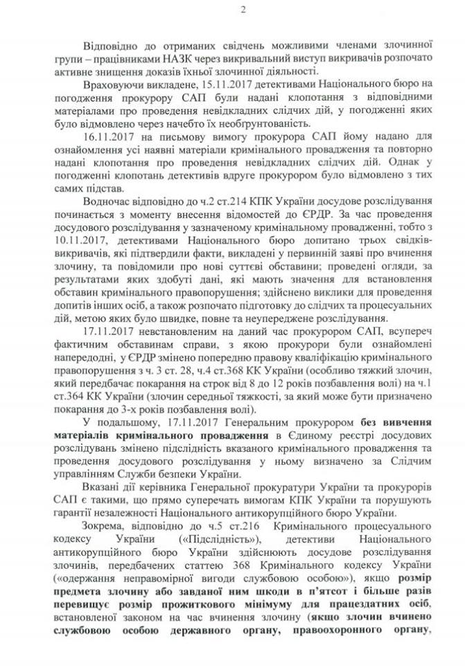 Однако 17 ноября генпрокурор Юрий Луценко забрал у НАБУ резонансное дело о злоупотреблениях руководства НАПК и поручил СБУ расследование уголовного производства.